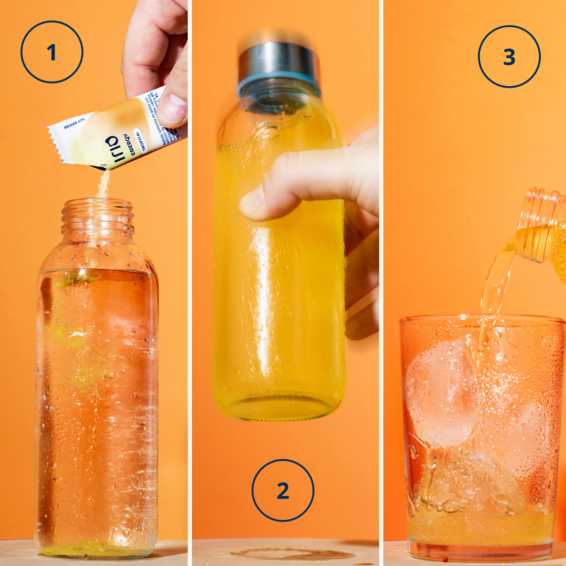 - Disuelve 1 sobre de Irio Energy en 500 ml de agua.